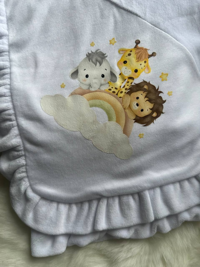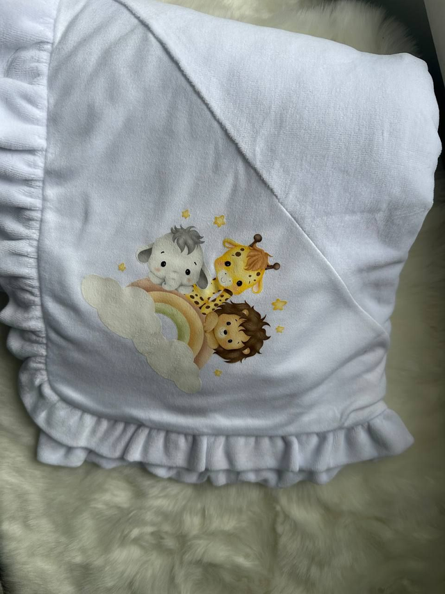 Nossas mantas são cuidadosamente personalizadas por mim, unindo qualidade, carinho e atenção a cada detalhe.